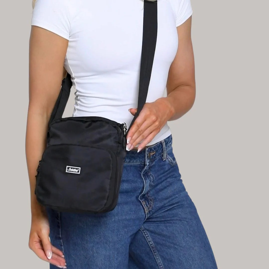 The Foldie® Crossbody packs down into itself in one smooth zip — no extra pouches, no bulky storage. Open it up when you're on the go, fold it down when you're done.